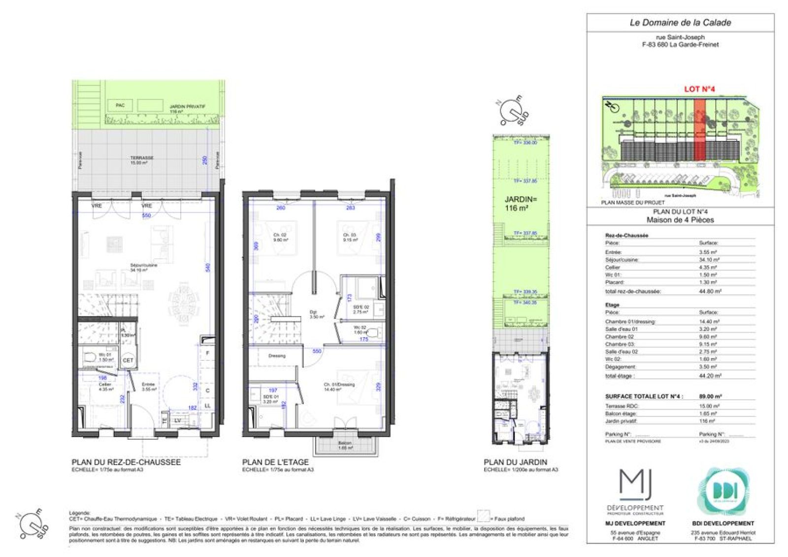 DOMAINE DE LA CALADE Un domaine résidentiel privé unique 11 villas mitoyennes haut de gamme, de 3 à 5 pièces, proposant des surfaces de vie intérieure de 69m2 à 106m2. Les extérieurs composés de grandes terrasses et de jardin privatif (de 90m2 à 439m2), prolongent les espaces de vie. Les vastes pièces à vivre lumineuses associées à un agencement optimisé et à des finitions de qualité contribuent au standing et au confort des villas.